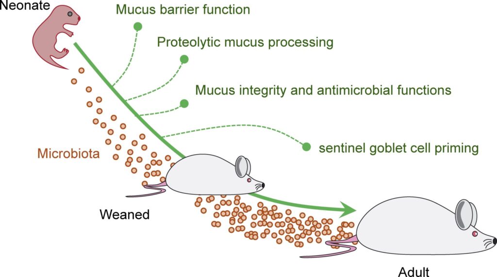 Happy to see another collaboration project led by George Birchenough of Gothenburg University (Sweden) published in Journal of Experimental Medicine demonstrating the importance of epithelial DUOX2: we find that proper development of the colonic mucus layer and functional sentinel goblet cells, which are pivotal in providing protection from infection and inflammation, is controlled by the intestinal microbiota by triggering host innate immune signaling via MyD88 and the NADPH/dual oxidase family member DUOX2 early in life during postnatal development.