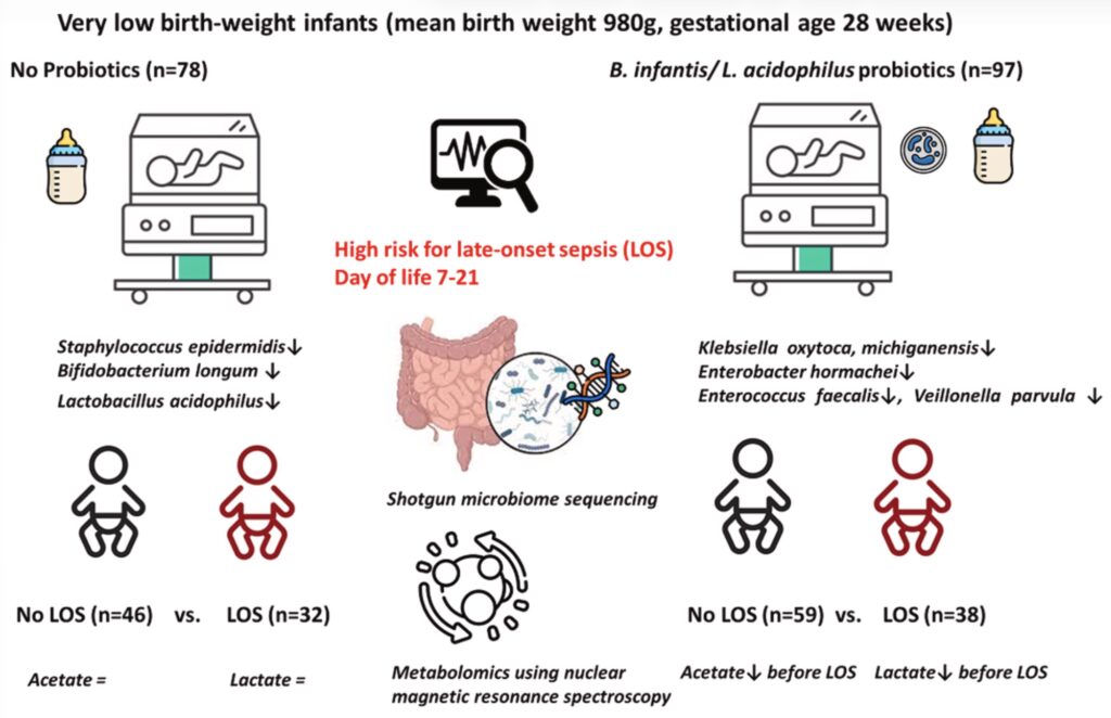 • Late-onset sepsis is associated with lower lactate and acetate levels.